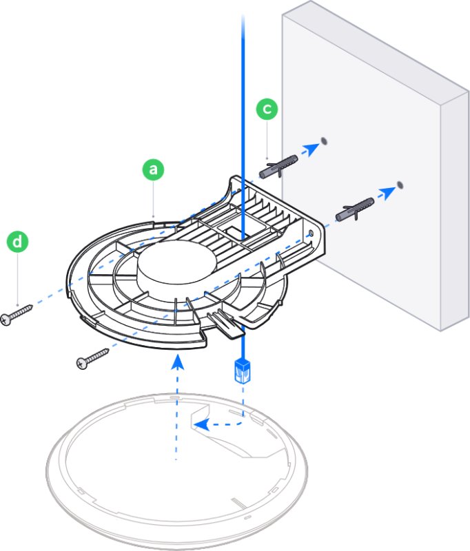 Това е автоматичен превод. Оригиналния текст може да видите тукСтенен монтаж за точки за достъп Unifi. Изработен е от пластмаса и тежи само 160 грама. Размерите са 200,5 x 175,1 x 31,2 mm.