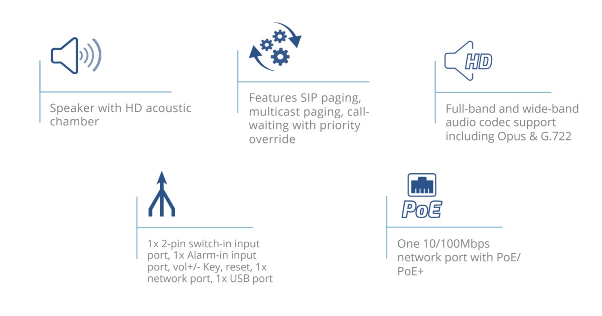 - Включва SIP пейджинг, мултикаст пейджинг, чакащо повикване с отмяна на приоритета