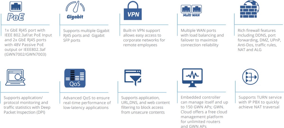 Серията GWN7000 са Multi-WAN гигабитови VPN рутери с вградени защитни стени , които позволяват на бизнеса да изгражда всеобхватни кабелни, безжични и VPN мрежи за едно или много места.