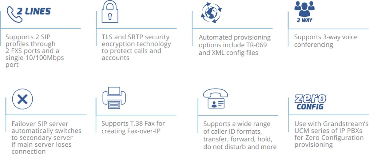 - Използвайте с IP PBXs от серията UCM на Grandstream за осигуряване без нулева конфигурация