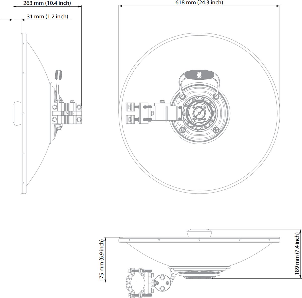 - UBR mounting bracket with dual pole clamp for better grip