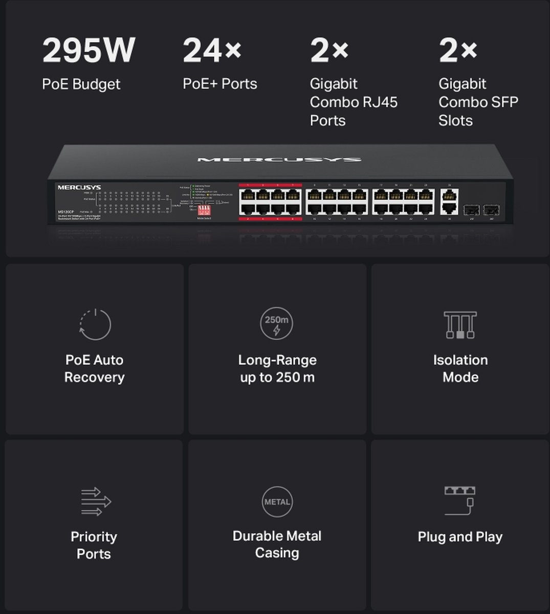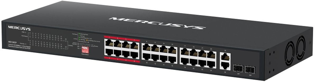 MERCUSYS MS126CP, PoE+ switch, 24x POE 10/100M, 2x 1G Combo uplink