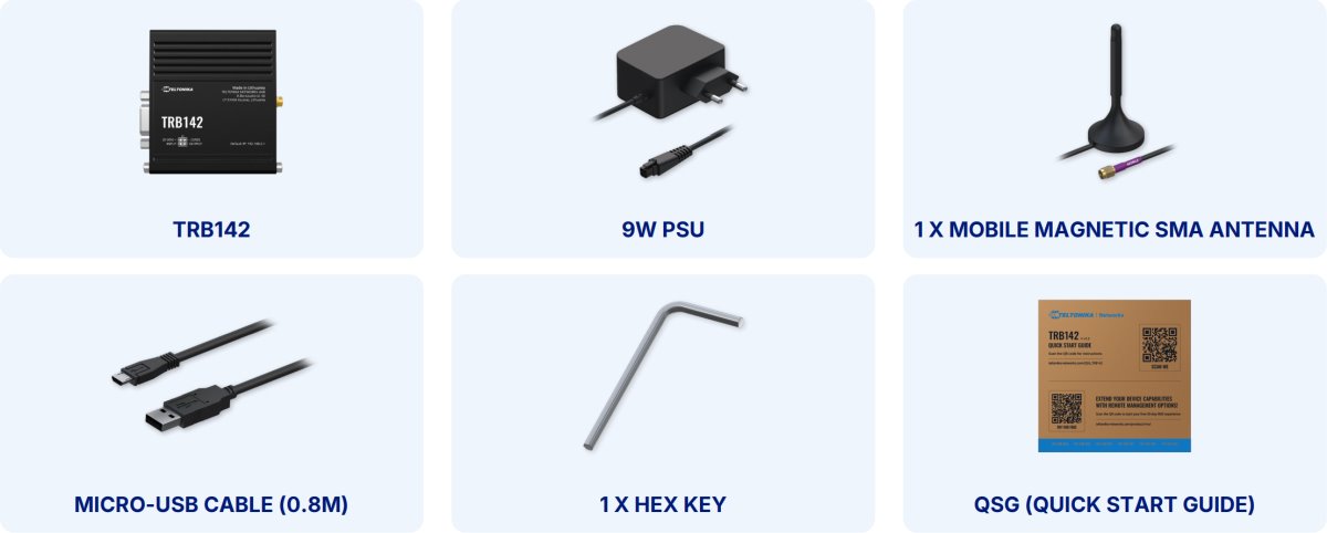 TRB142 LTE RS232 Gateway е малко, леко и енергийно ефективно IoT устройство, оборудвано с критични за мисията LTE възможности , RS232 сериен комуникационен порт и Linux среда, предлагаща висока степен на персонализиране, проектирано да изпълнява IoT проекти с лекота.