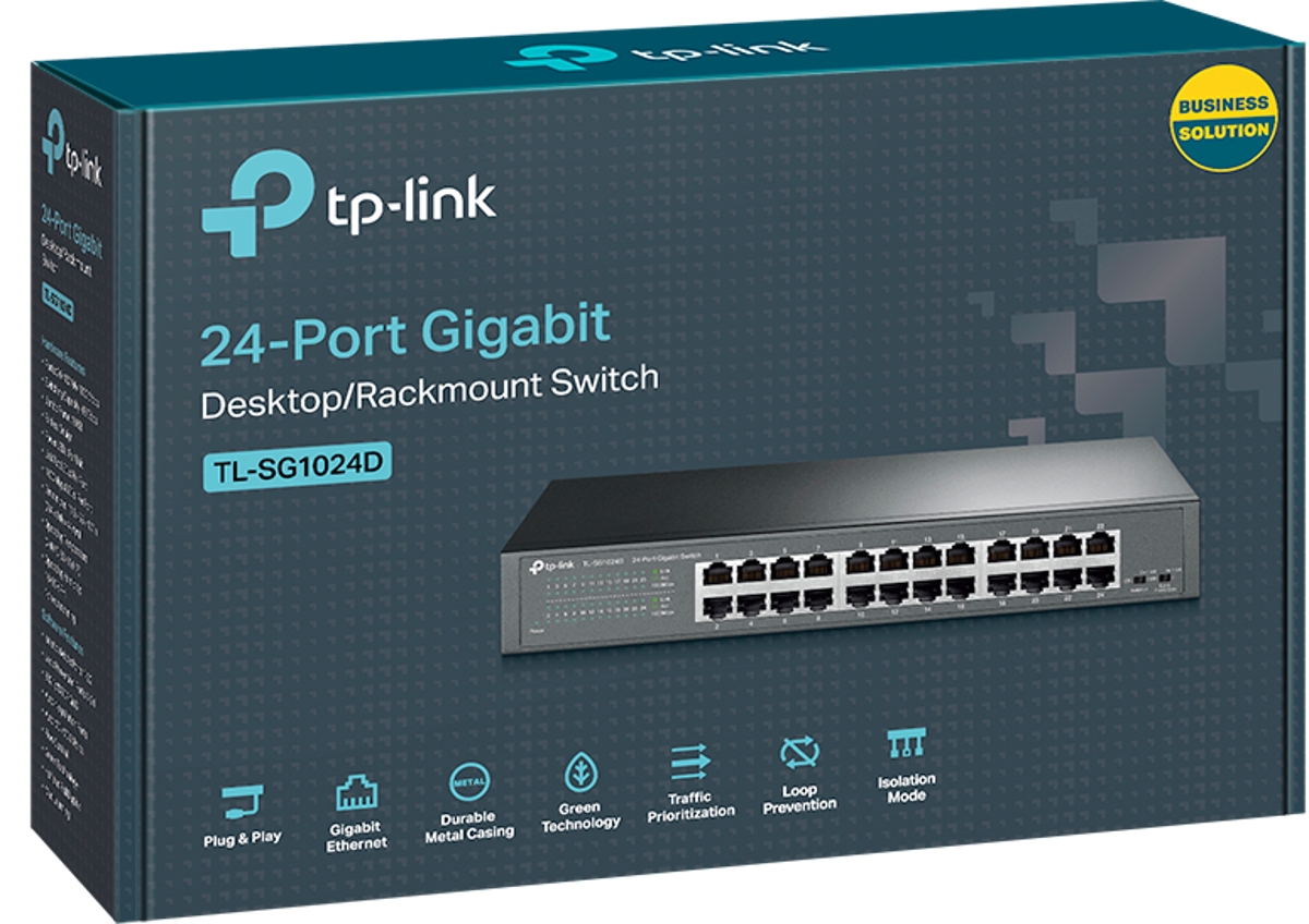 Това е автоматичен превод. Оригиналния текст може да видите тукTP-Link TL-SG1024D е гигабитов комутатор с комутационен капацитет от 48 Gbps и (24) 1 Gbit порта . Комутаторът използва пасивно охлаждане, осигуряващо напълно безшумна работа, подходяща за офис среда. Максималната му консумация на енергия е 13,5 W.