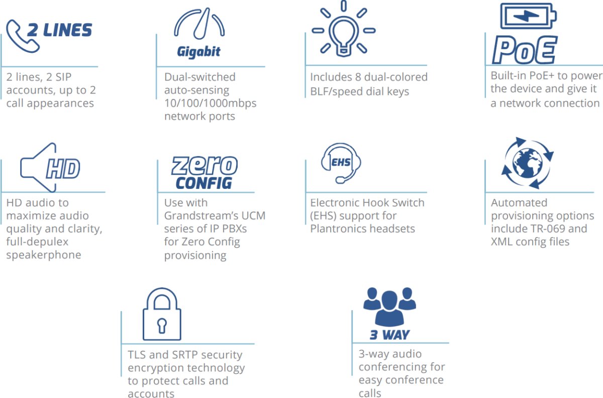 Grandstream GXP1628 SIP phone - 2x SIP account and HD audio