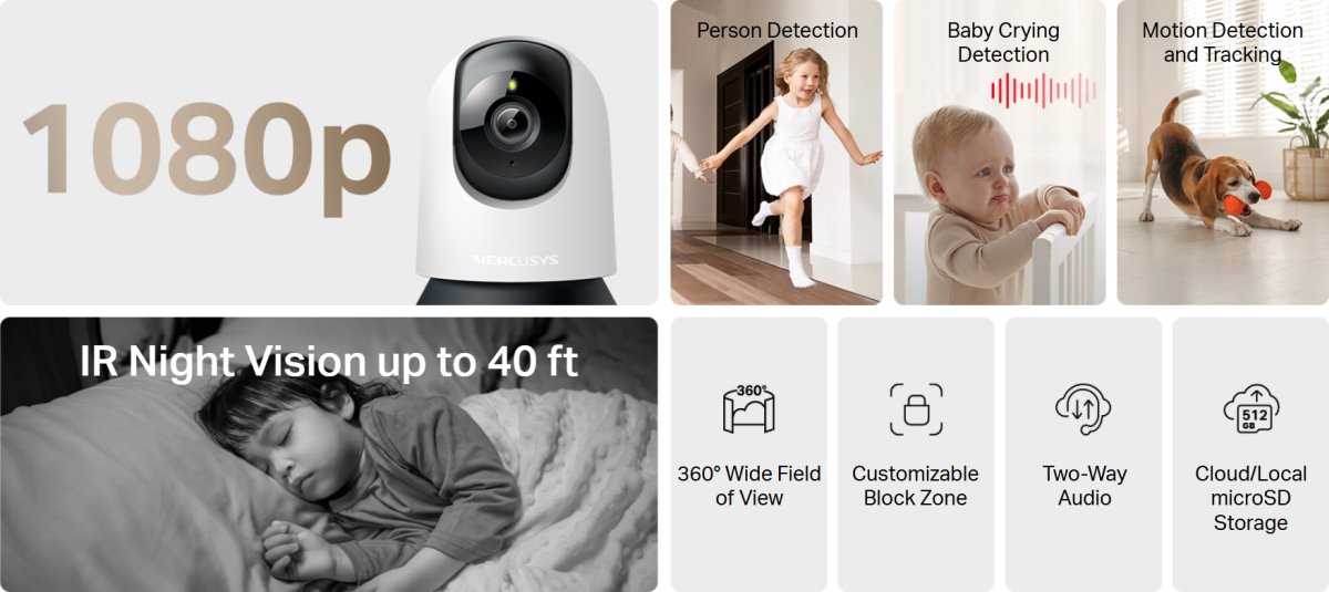 MERCUSYS MC200 pan/tilt home security Wi-Fi camera