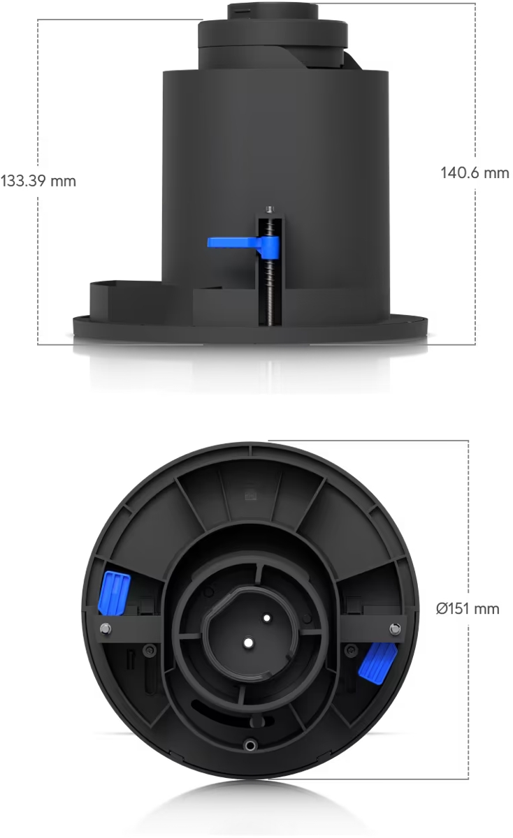Това е автоматичен превод. Оригиналния текст може да видите тукIn-ceiling mount for the Ubiquiti UniFi G6 PTZ camera, black color.