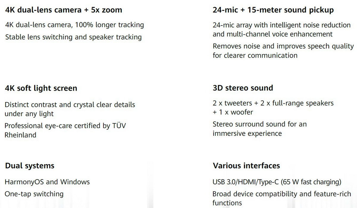 Това е автоматичен превод. Оригиналния текст може да видите тукСерията HUAWEI IdeaHub S3 разполага с интелигентна двойна камера , която осигурява реалистично изображение, първокласно изживяване при срещи и сътрудничество без забавяне. Благодарение на подобреното HD аудио , видео и функциите на изкуствения интелект, тя улавя всеки детайл и интелигентно се адаптира към нуждите на потребителя. Това решение е предназначено за модерни офиси и конферентни зали, помагайки на компаниите да изградят интелигентна работна среда, като същевременно повишават ефективността на работата и качеството на сътрудничеството.
