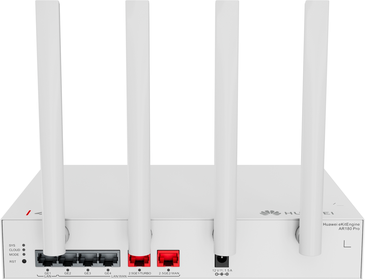 Huawei AR180Pro е високопроизводителен двубандов Wi-Fi 7 рутер , работещ едновременно на две честотни ленти ( 2.4GHz и 5GHz ), за да постигне максимална скорост на пренос на данни до 3.57Gbps . Рутерът е оборудван с (2) 2.5G порта , (4) Gbit порта и поддържа управление чрез локален уеб интерфейс, както и управление в облак ( мобилно приложение eKit SNC / eKit). Той разполага с модерни технологии като MU-MIMO , 4096-QAM и MLO . Максималната консумация на енергия на устройството е 13.5W.