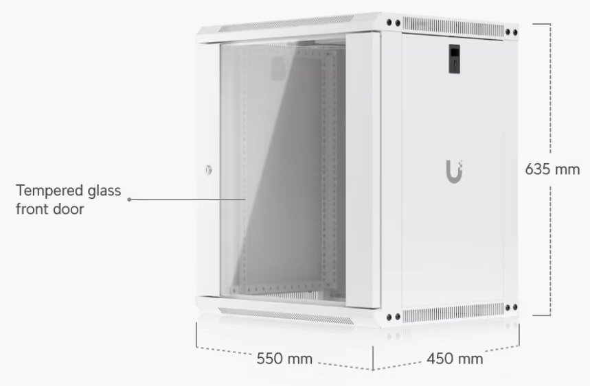 Ubiquiti 12U Rack Cabinet, Wall mount, 600mm, glass door