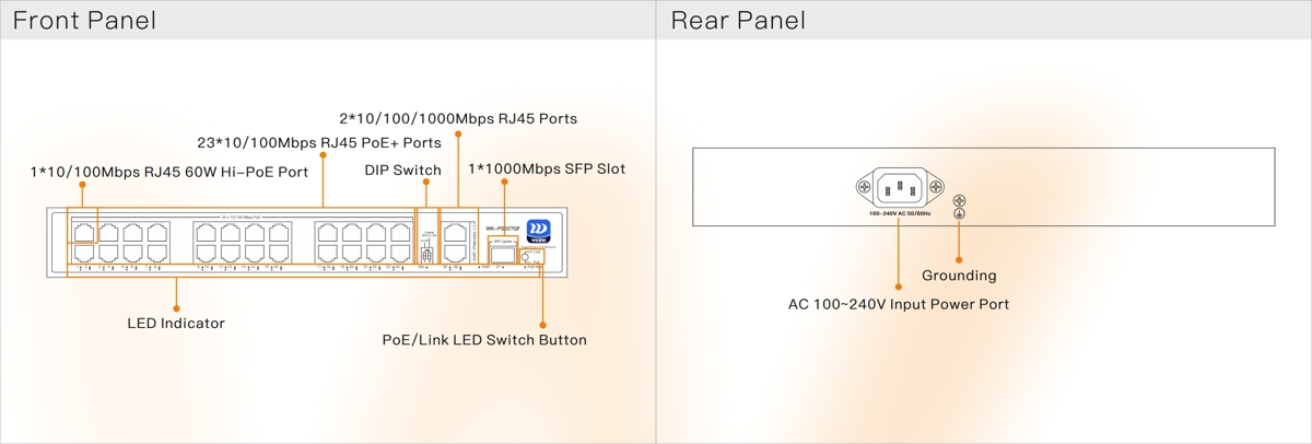 (24) 10/100Mbps + (2) 10/100/1000Mbps