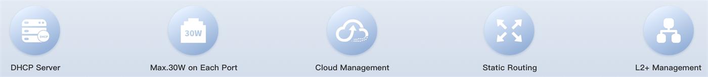 - PoE+ 802.3af/at с изходна мощност до 30W/порт и общ PoE бюджет от 370W