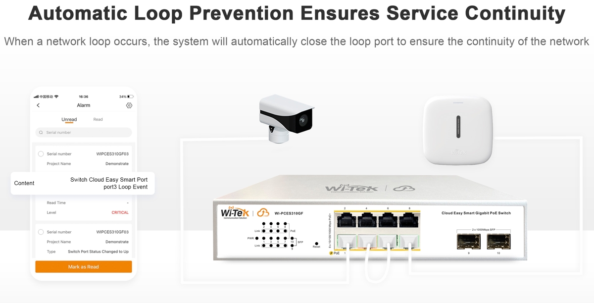 - Управление на облака чрез Wi-Tek Cloud - осигурява ефективно, лесно и сигурно дистанционно управление на устройства, интелигентно внедряване, автоматична мрежова конфигурация и предупреждения за необичайни събития