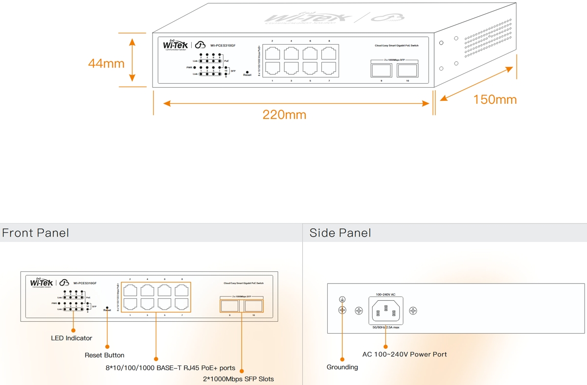 Wi-Tek WI-PCES310GF V2 Gbit Easy Smart Cloud PoE Switch