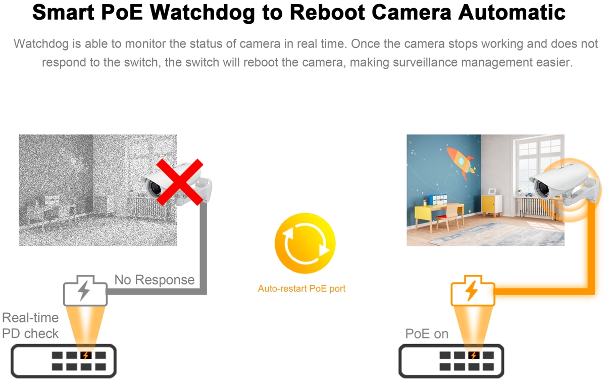 - Автоматично откриване на ONVIF устройства и функция за автоматично рестартиране на IP камерата