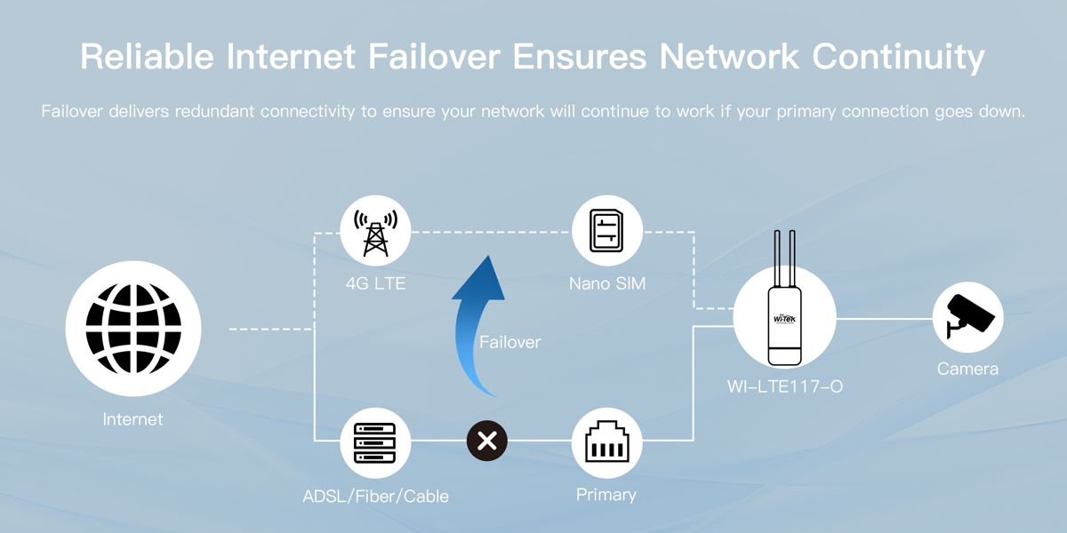 - Функцията за резервно захранване автоматично превключва към резервна връзка, ако основната линия откаже