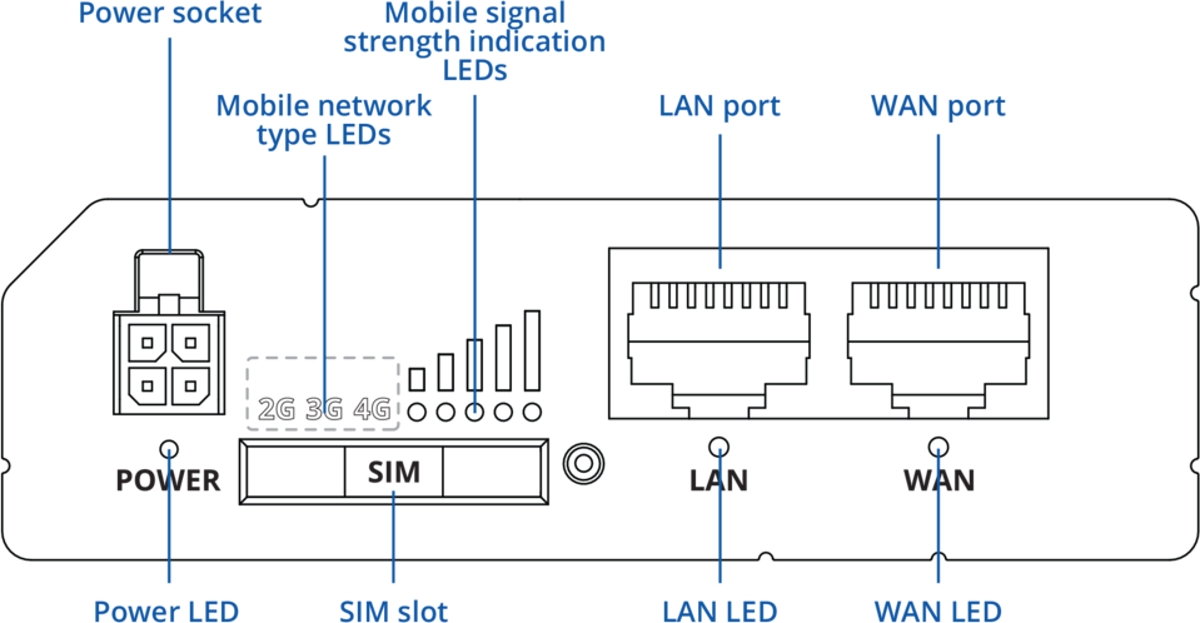 Рутерът е оборудван с модем, поддържащ 4G LTE Cat. 4, 3G и 2G , със скорости на данни до 150Mbps за изтегляне и 50Mbps за качване . Захранването може да се осигури чрез 4-пинов DC конектор (9-30 V) или пасивно PoE (9-30 V) на LAN1 порта .