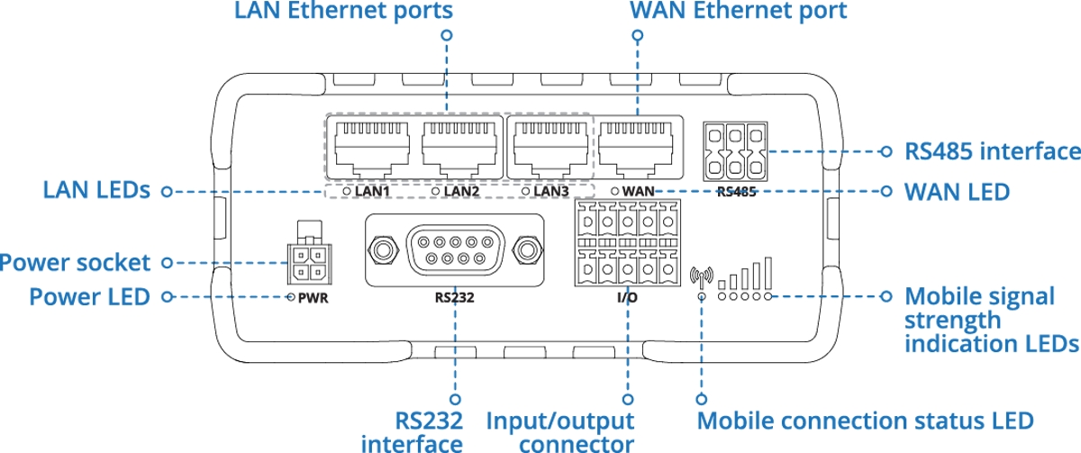Рутерът е оборудван с модем, поддържащ 4G LTE Cat. 4, 3G и 2G , със скорости на данни до 150Mbps за изтегляне и 50Mbps за качване . Захранването може да се осигури чрез 4-пинов DC конектор (9-30 V) или пасивно PoE (9-30 V) на LAN1 порта .