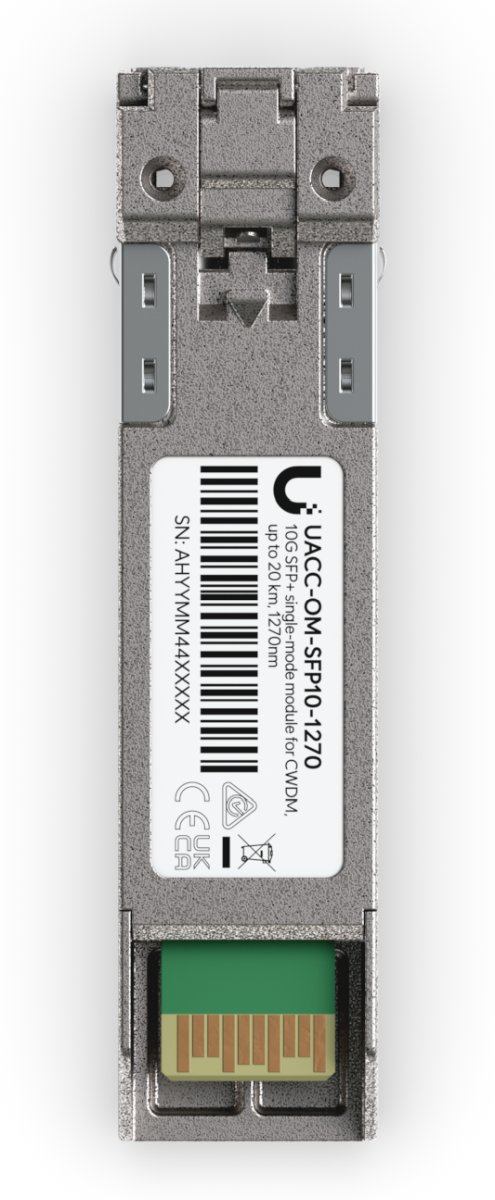 10G singlemode optical CWDM module with a wavelength of 1270nm. The module is compatible with both SFP+ and SFP interfaces and is suitable for links up to 20 km. It features 2 LC connectors with UPC polish.