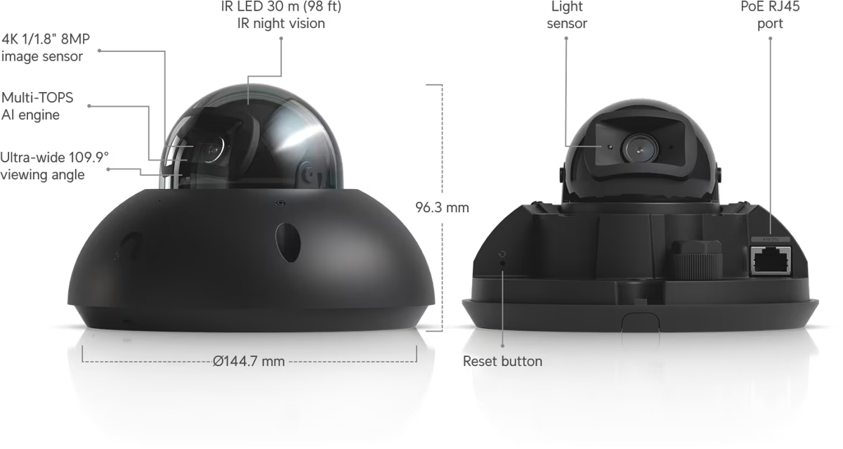 Ubiquiti UVC-G6-Dome-B - 8MP IP Camera, Black