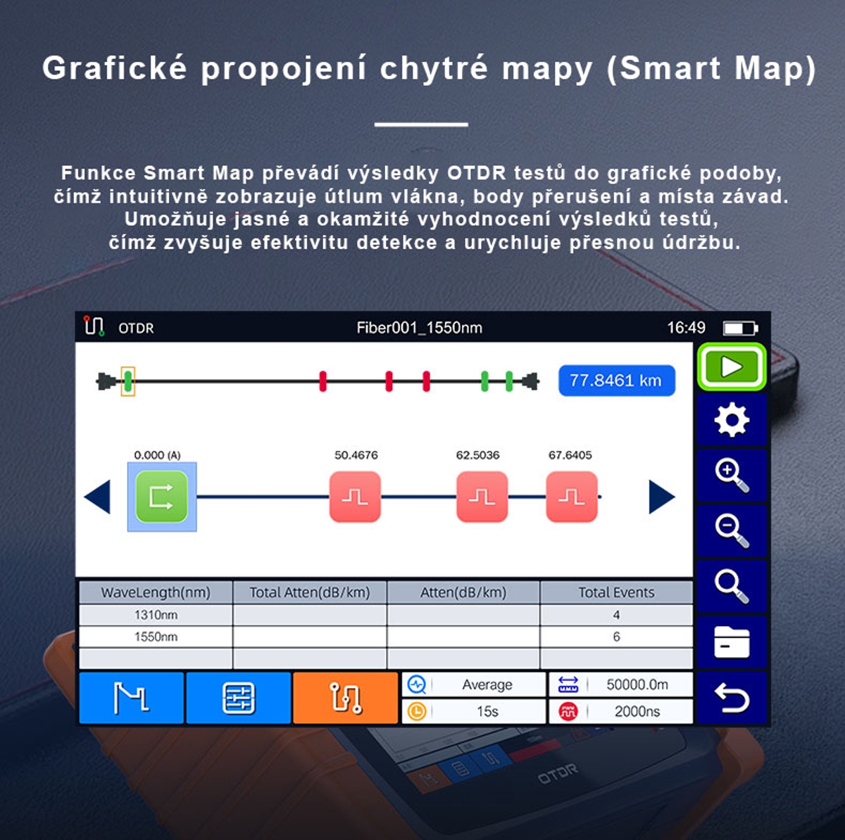 - OTDR - measurement of optical route parameters (26/24 dB, 1310/1550 nm)