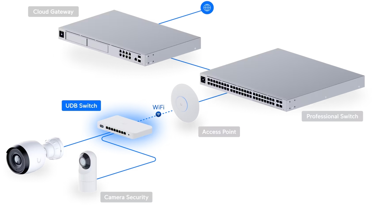 Ubiquiti UDB-Switch, UniFi 2.5G PoE switch with Wi-Fi 7 bridge