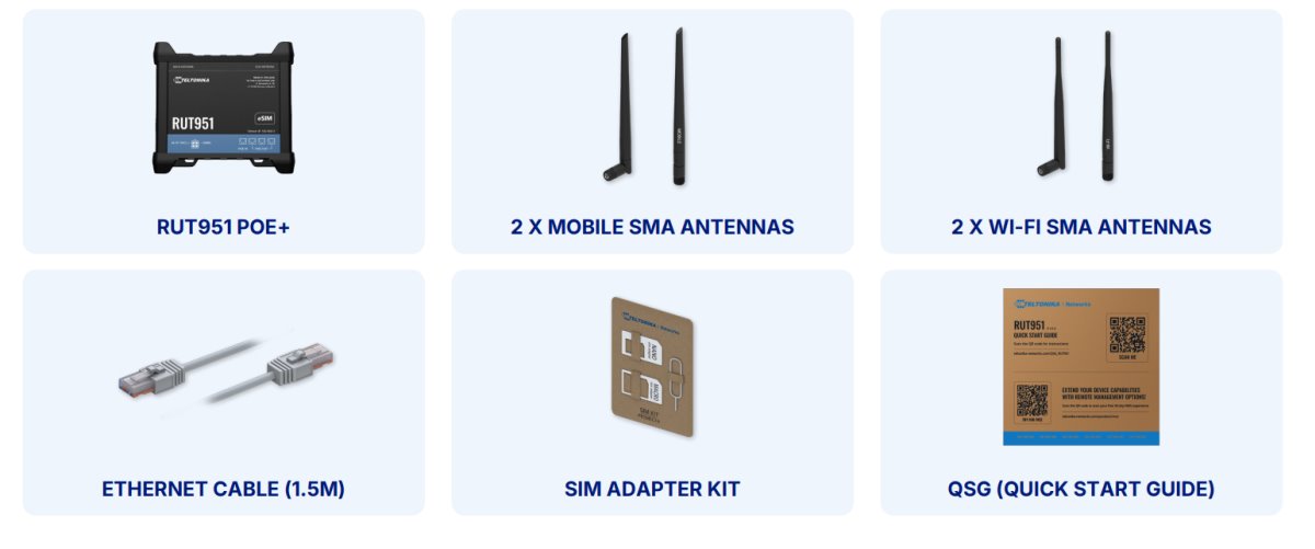 Teltonika RUT951 PoE+ Industrial PoE+ Cellular Router (without PSU)