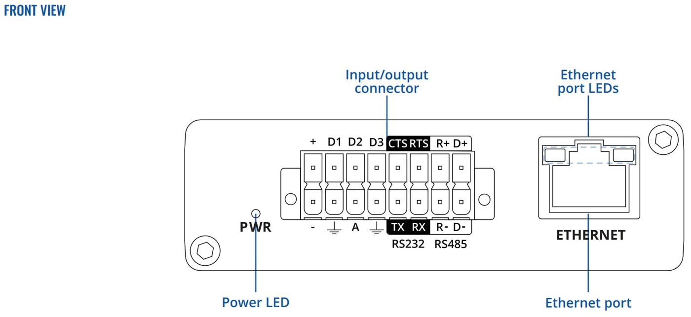 - INTERFACES - Ethernet, I/Os, and Serial (RS232, RS485) interfaces with 16-pin terminal block