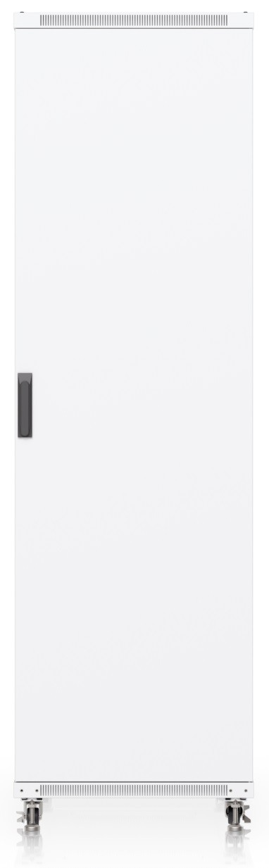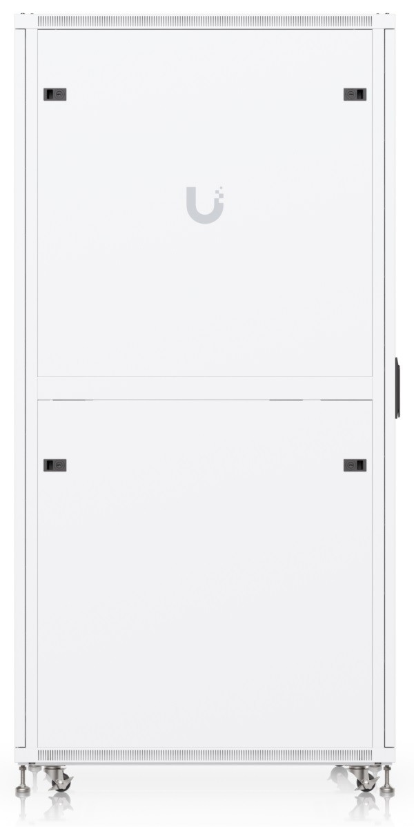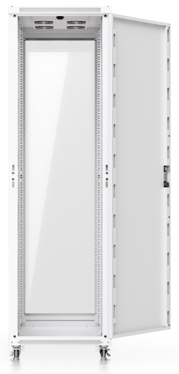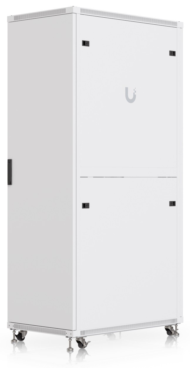 Ubiquiti UACC-Rack-42U-1000-G is a 19" floor-standing rack in 42U size, delivered fully assembled and equipped with a glass front door panel, which — just like the split removable side panels — can be locked to prevent unauthorized access. The door is factory-set to a left-hand orientation with the option to reverse it. With a depth of 1000 mm, the rack allows the installation of networking devices up to 877 mm deep.
