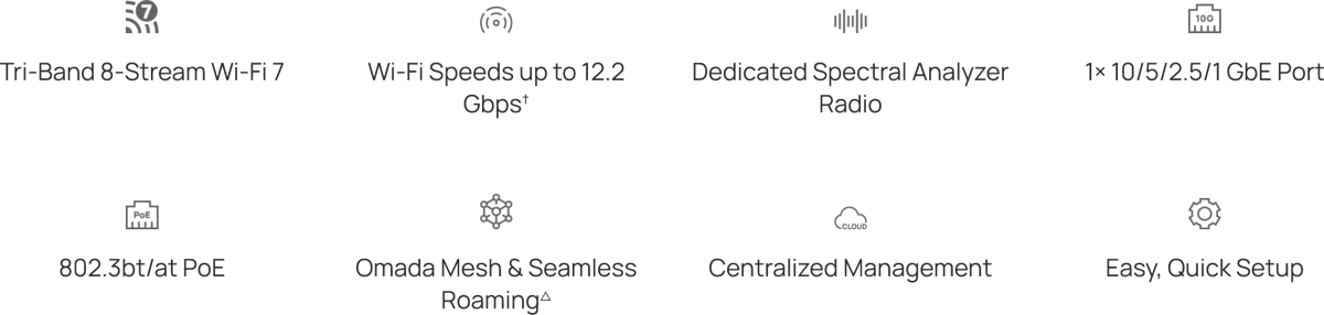 - (1) 10Gbps 802.3bt PoE-In port and tri-band 8-stream Wi-Fi 7
