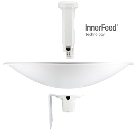 Технологията InnerFeed на Ubiquiti интегрира радиото във фийдхорна на антената, така че няма нужда от кабели за свързване на радиото към антената. Това подобрява производителността, защото елиминира кабелните загуби .