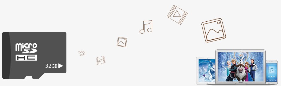 Можете лесно да споделяте снимки, музика, видеоклипове и други безжично във вашата мрежа от micro SD карта през micro SD слота за съхранение - осигурявайки съхранение до 32G*.