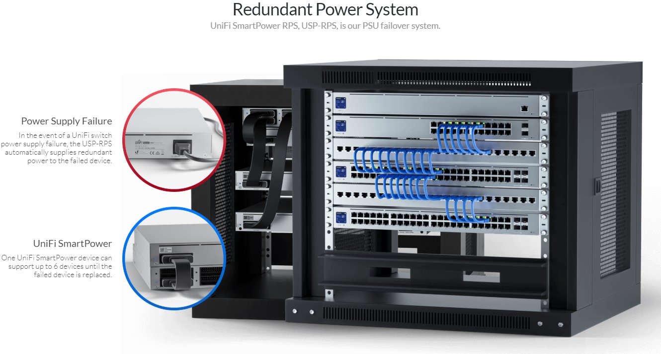 Двойката 10G SFP + портове с 1G SFP обратна съвместимост ще служи като Uplink. В случай на прекъсване на електрозахранването, превключвателят може да бъде свързан към резервната система UniFi SmartPower, която може да работи с до 6 поддържани устройства.