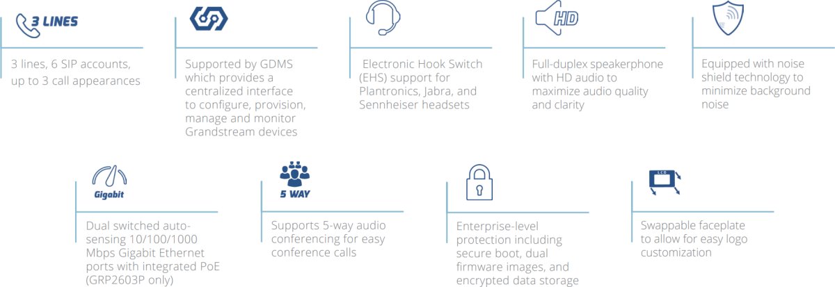 - Поддържа се от GDMS, който осигурява централизиран интерфейс за конфигуриране, осигуряване, управление и наблюдение на устройства Grandstream