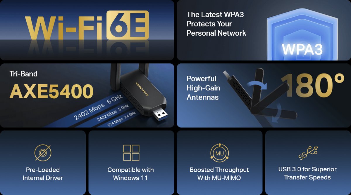 MERCUSYS MA86XH AXE5400 Tri-Band Wi-Fi 6E USB adapter