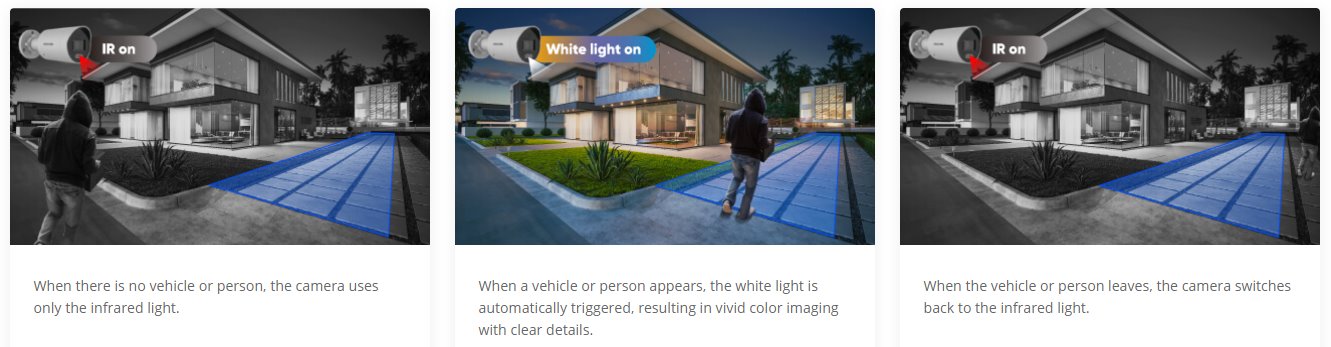 Три режима на осветяване предлагат цветен, черно-бял или цветен дисплей, задействан от движение, за да отговарят на почти всяка нужда във всяка среда.