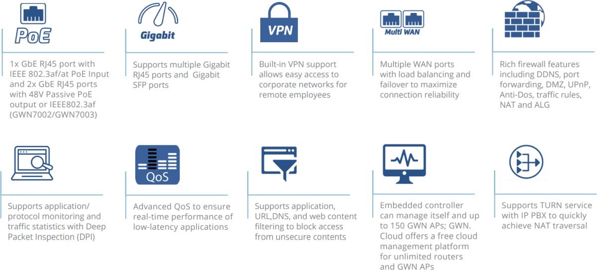 Това е автоматичен превод. Оригиналния текст може да видите тукСерията GWN7000 са Multi-WAN гигабитови VPN рутери с вградени защитни стени , които позволяват на бизнеса да изгражда всеобхватни кабелни, безжични и VPN мрежи за едно или много места.