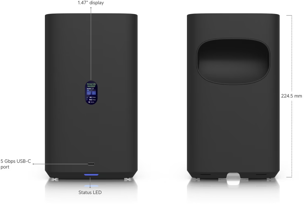 Това е автоматичен превод. Оригиналния текст може да видите тукМрежово устройство за съхранение UniFi с (4) 2.5/3.5" слота за твърди дискове , (2) M.2 NVMe SSD кеш слота , 2.5 GbE RJ-45 мрежова връзка, USB-C свързаност и включен PoE+++ адаптер, всичко това в компактен размер. Захранва се от четириядрен ARM Cortex-A55 процесор, допълнен от 4 GB RAM.