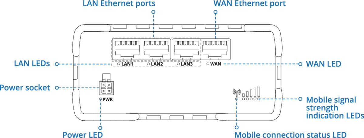 Рутерът е оборудван с модем, поддържащ 4G LTE Cat. 4, 3G и 2G , със скорости на данни до 150Mbps за изтегляне и 50Mbps за качване . Захранването може да се осигури чрез 4-пинов DC конектор (9-30 V) или пасивно PoE (9-30 V) на LAN1 порта .